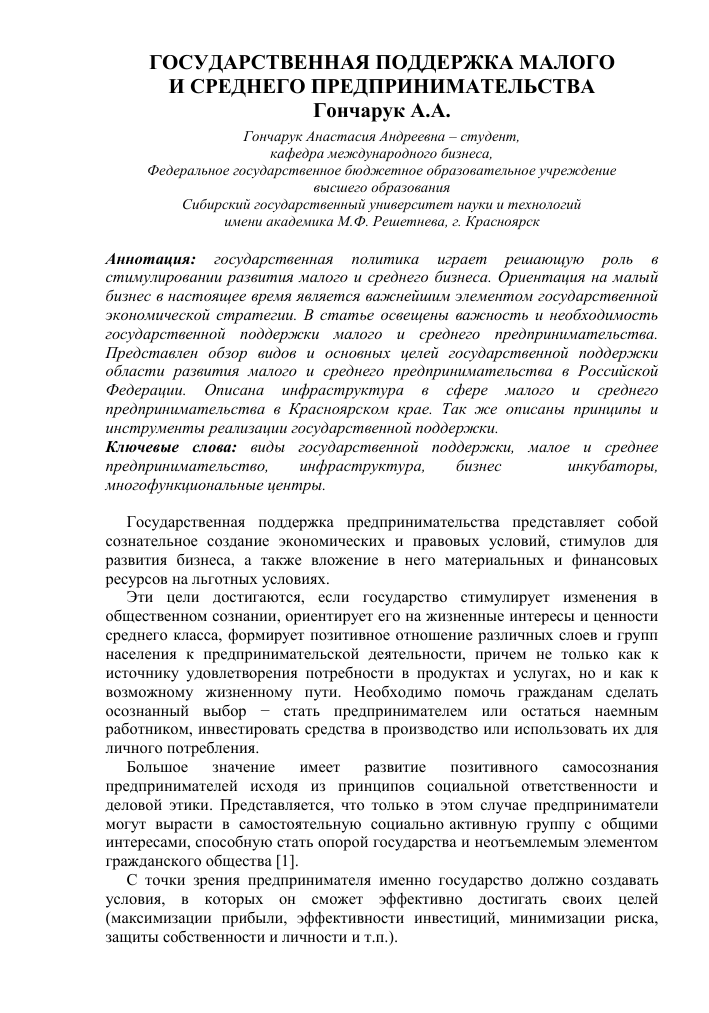 Поддержка предпринимательства и творчества